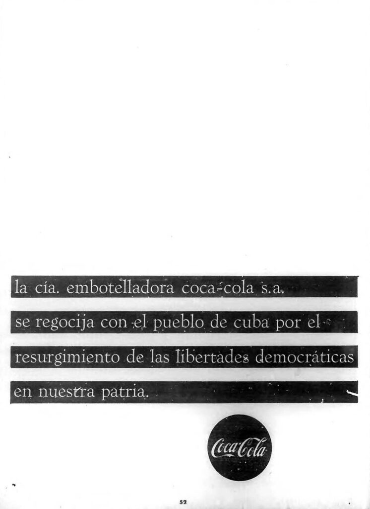 During the months following the Revolution, the business sector celebrated the end of the Batista regime, trying to align their products and campaigns with the revolutionary ethos.