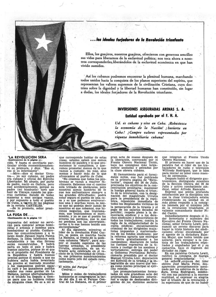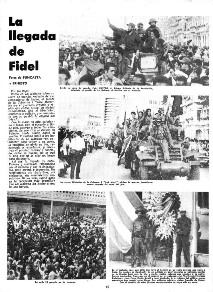 “La llegada de Fidel” | Carteles, January 12, 1959, p. 47